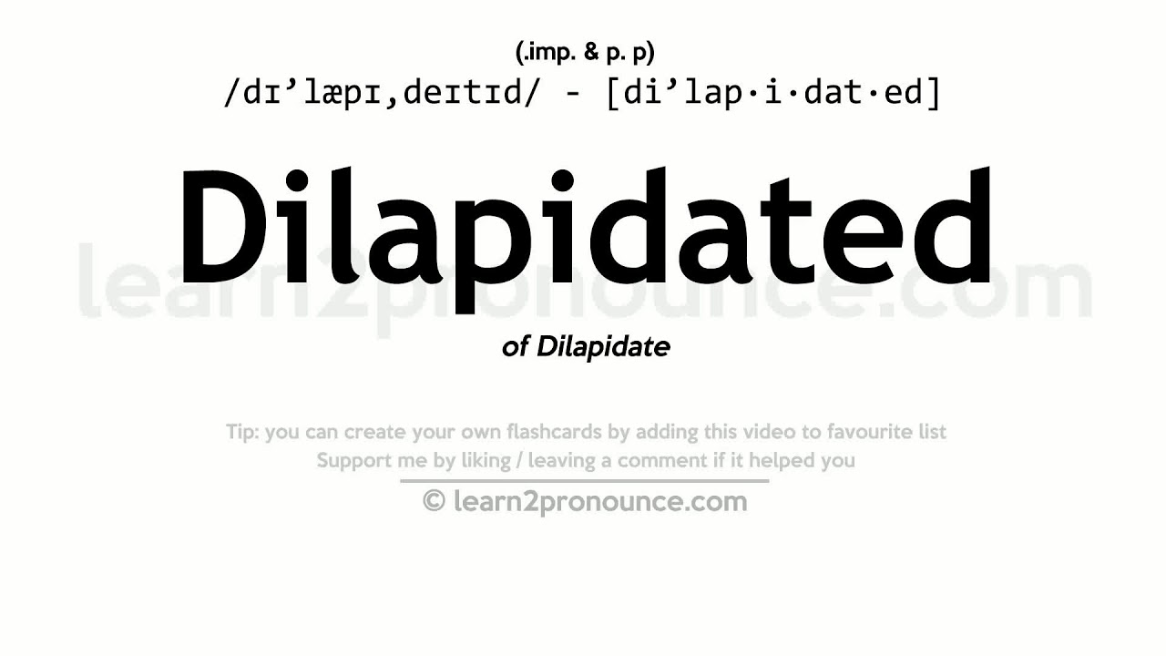 English pronunciation of dilapidated dilapidated uk dɪˈlæpɪdeɪtɪd How to pronounce dilapidated adjective in British English us dɪˈlæpədeɪtɪd How to pronounce dilapidated. Dilapidated pronunciation in Australian English Dilapidated pronunciation in American English Dilapidated pronunciation in American English Take your English pronunciation to the next. Break dilapidated down into sounds.