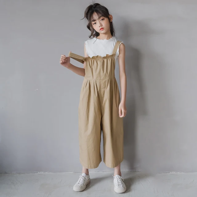 Girls Overalls Spring Summer Korean Children Clothing Casual Loose Straight Wide Leg Jumpsuit Kids Teens Capri Pants Size 6 16 Aliexpress